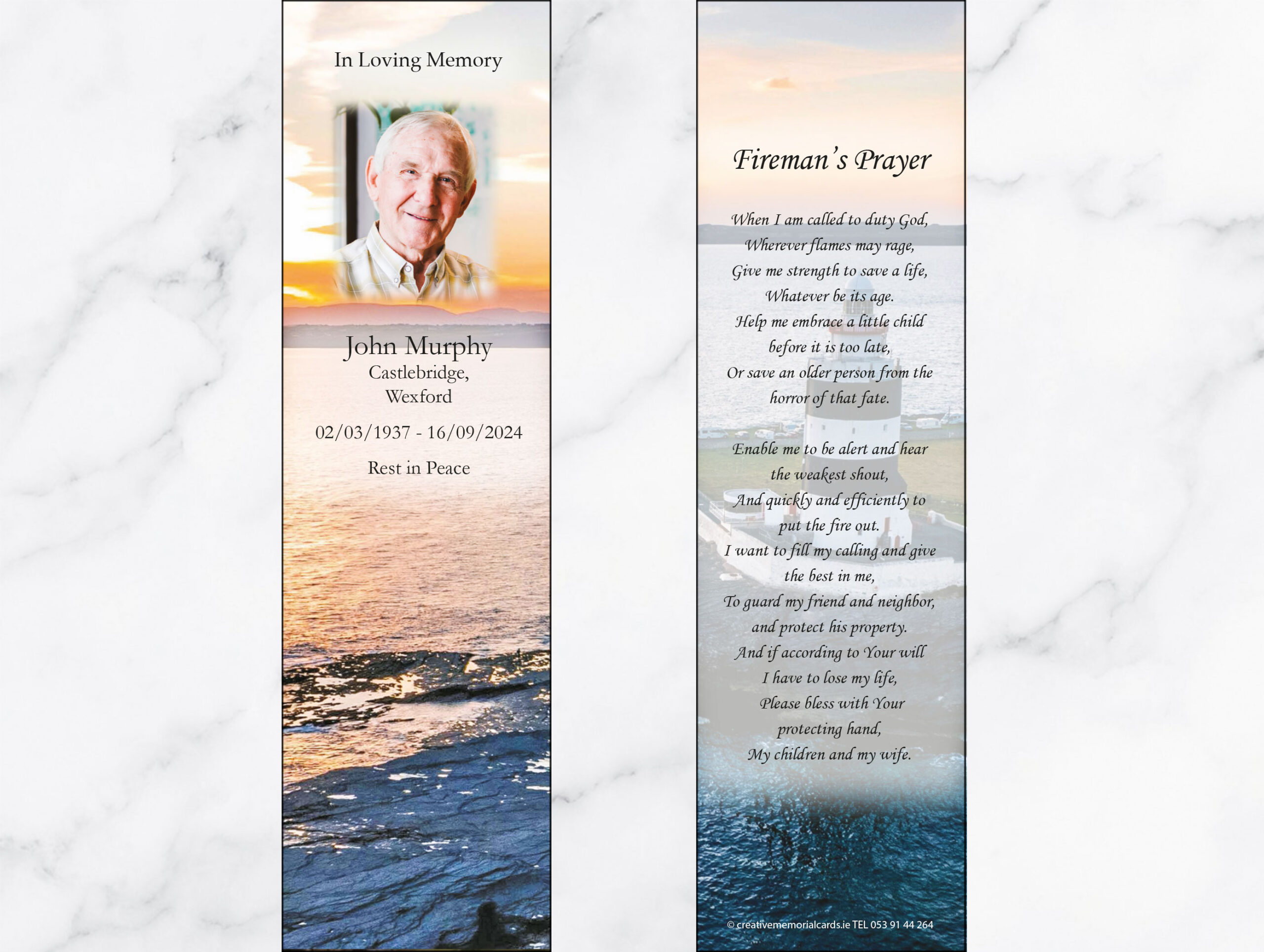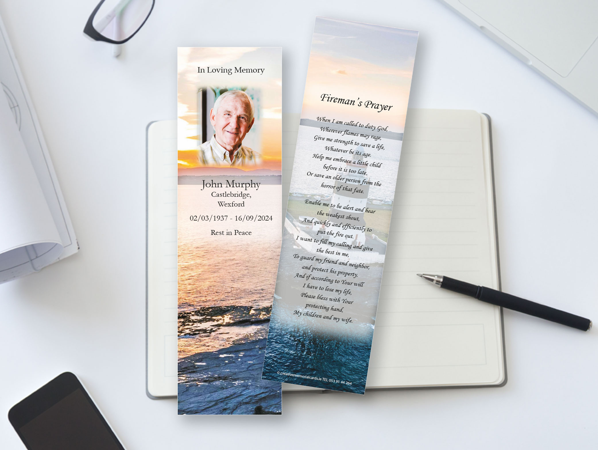 Alongside our Hook Lighthouse 2 memorial bookmarks, customers can choose any of our designs throughout our range of Wallet Cards, Bookmarks, and Acknowledgement Cards.