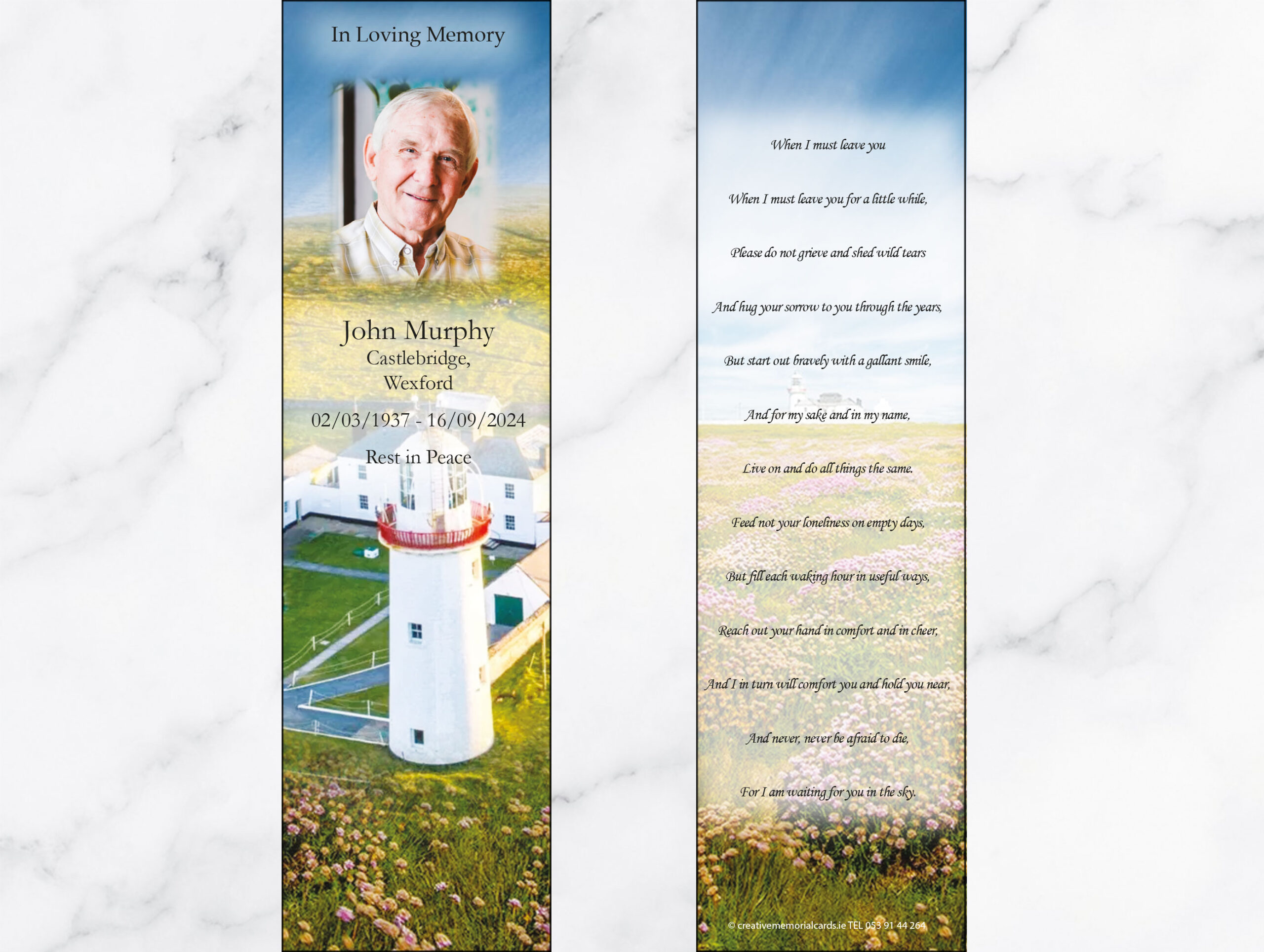 Creative Memorial Cards Ireland – Honour your loved ones with our beautifully crafted Loophead Lighthouse memorial bookmarks.