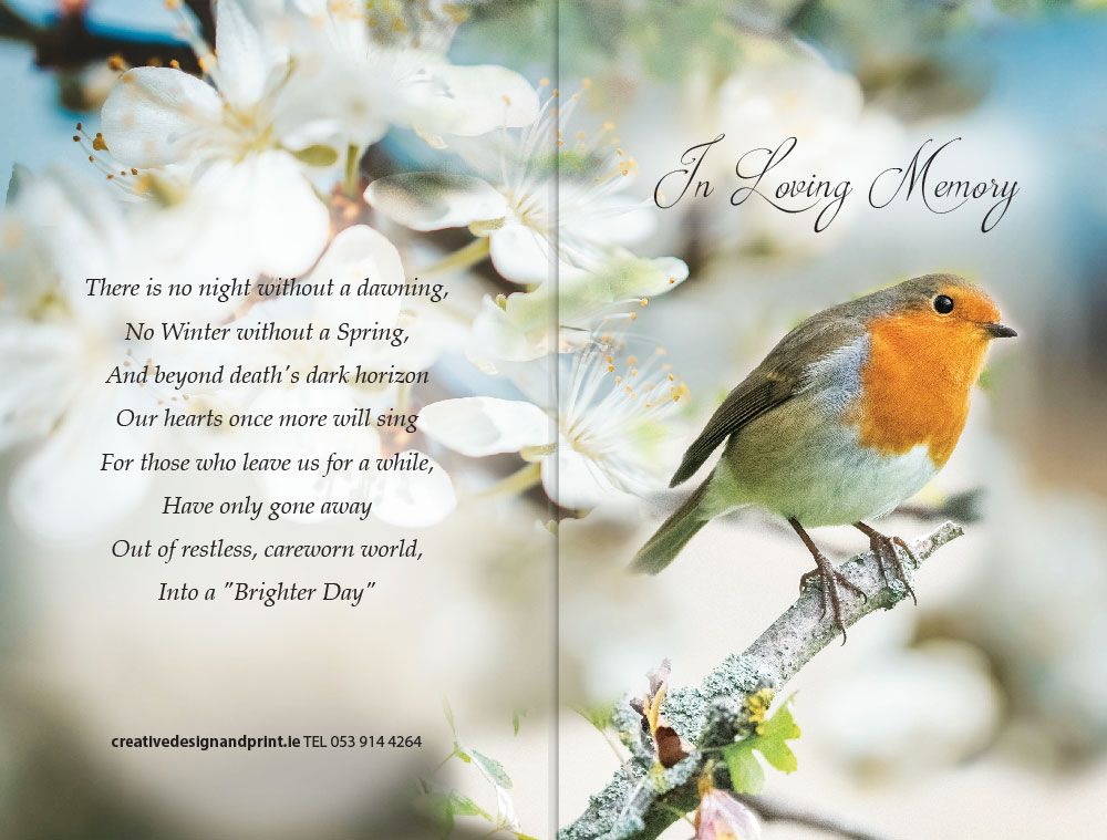 Creative Memorial Cards Ireland – Honour your loved ones with our beautifully crafted Perched Robin Memorial Cards.