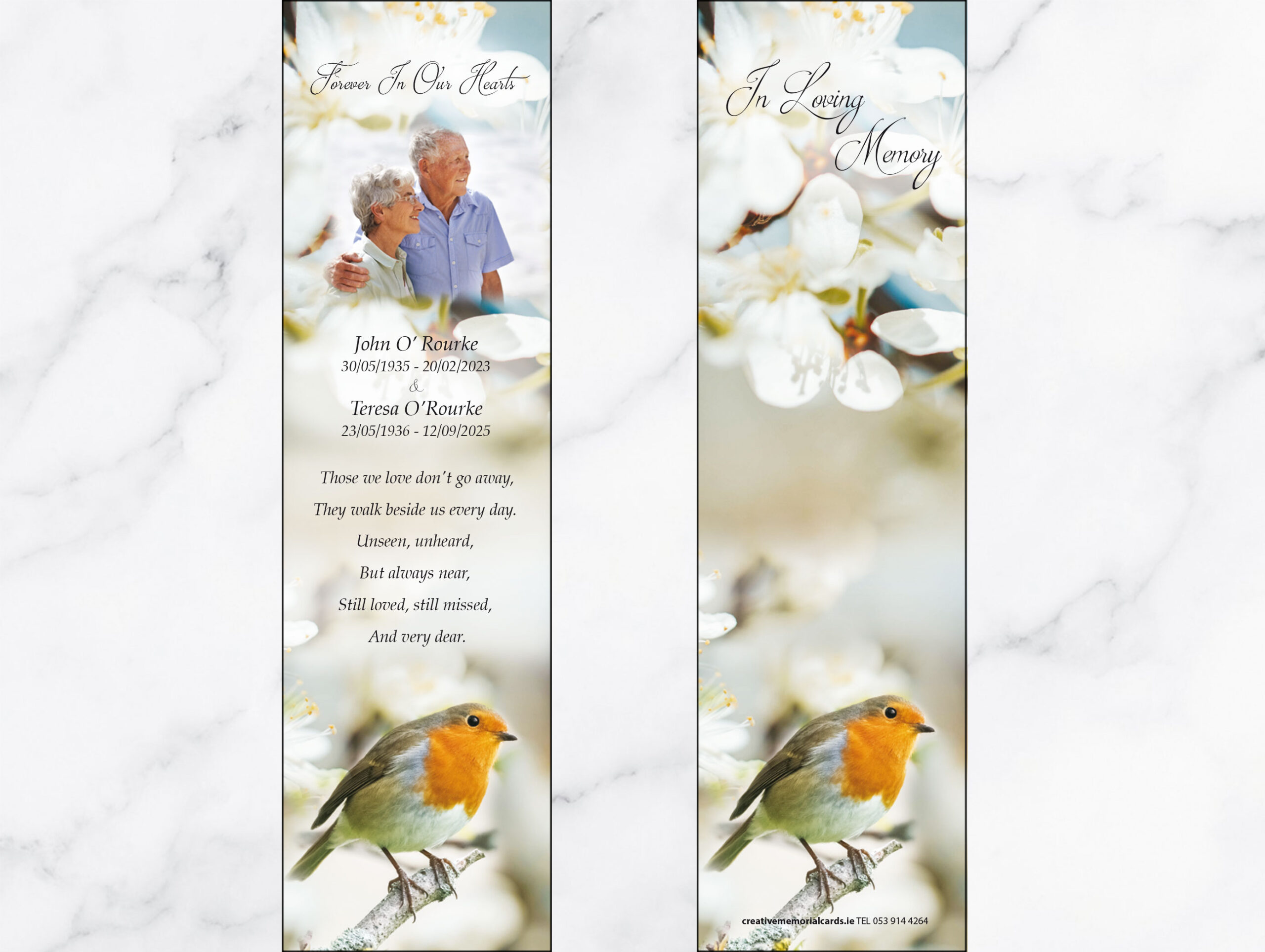In addition to our Skellig Michael memorial bookmarks, we also offer a custom memorial card design service. Alternatively, you may wish to use your own images that have a special significance for your loved one. Click here to view our full range of Memorial Verses before you fill in the form.