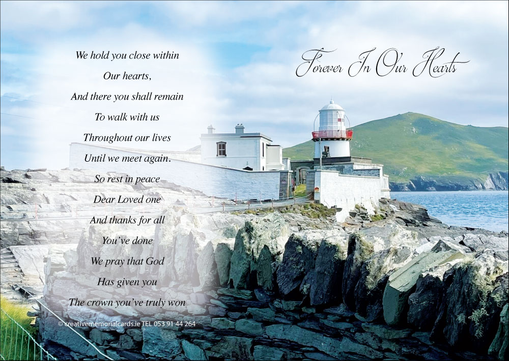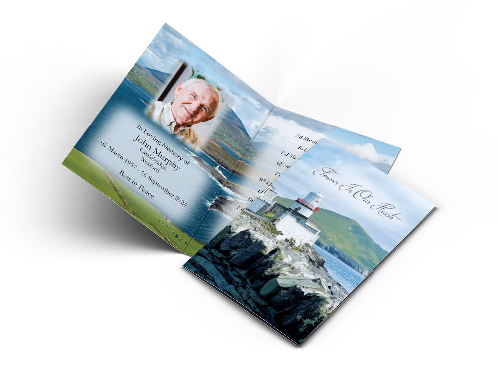 Creative Memorial Cards Ireland – Honour your loved ones with our beautifully crafted Valentia Island Lighthouse Memorial Cards.