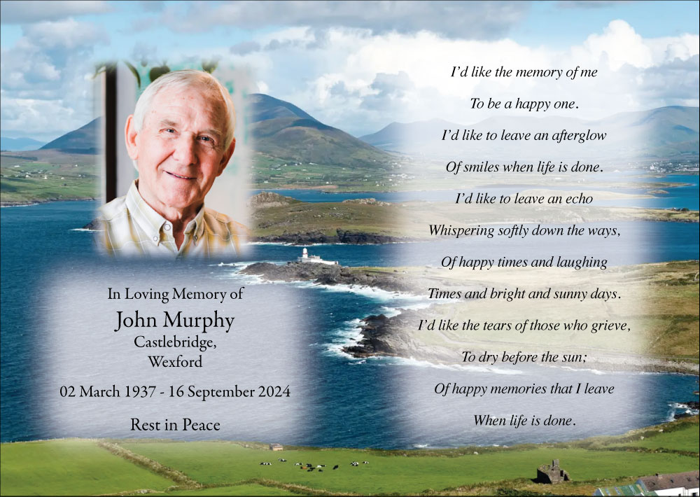 In addition to our Valentia Island Lighthouse Memorial Cards, we also offer a custom memorial card design service. Alternatively, you may wish to use your own images that have a special significance for your loved one. Click here to view our full range of Memorial Verses before you fill in the form.