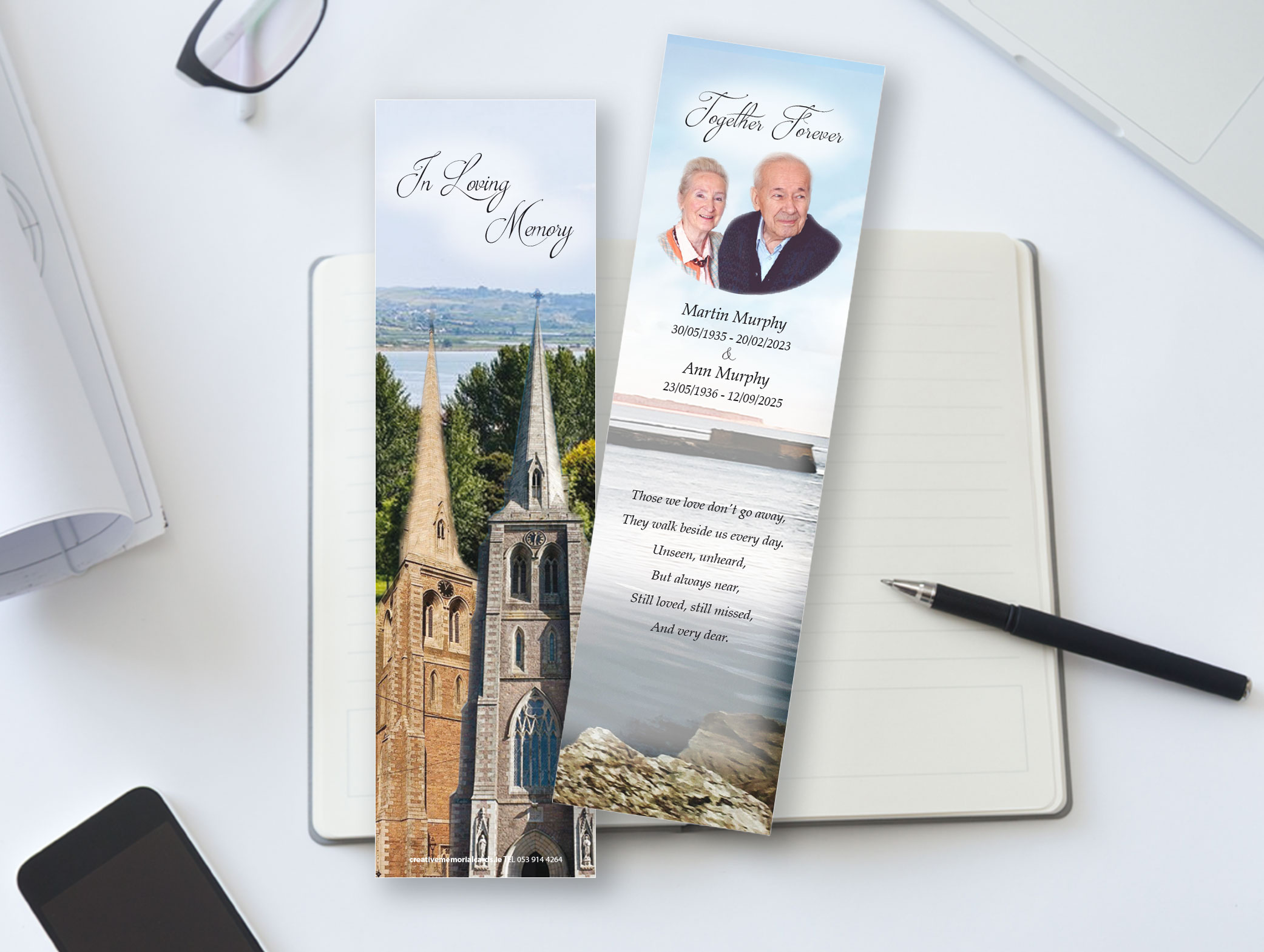 Alongside our Wexford Twin Churches memorial bookmarks, customers can choose any of our designs throughout our range of Wallet Cards, Bookmarks, and Acknowledgement Cards.