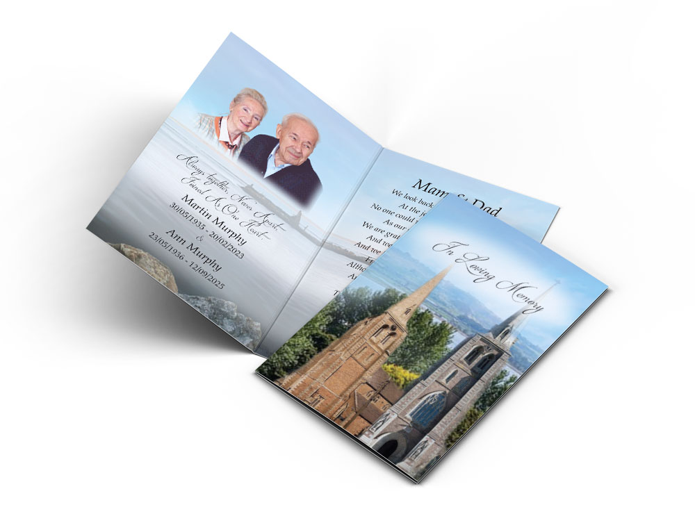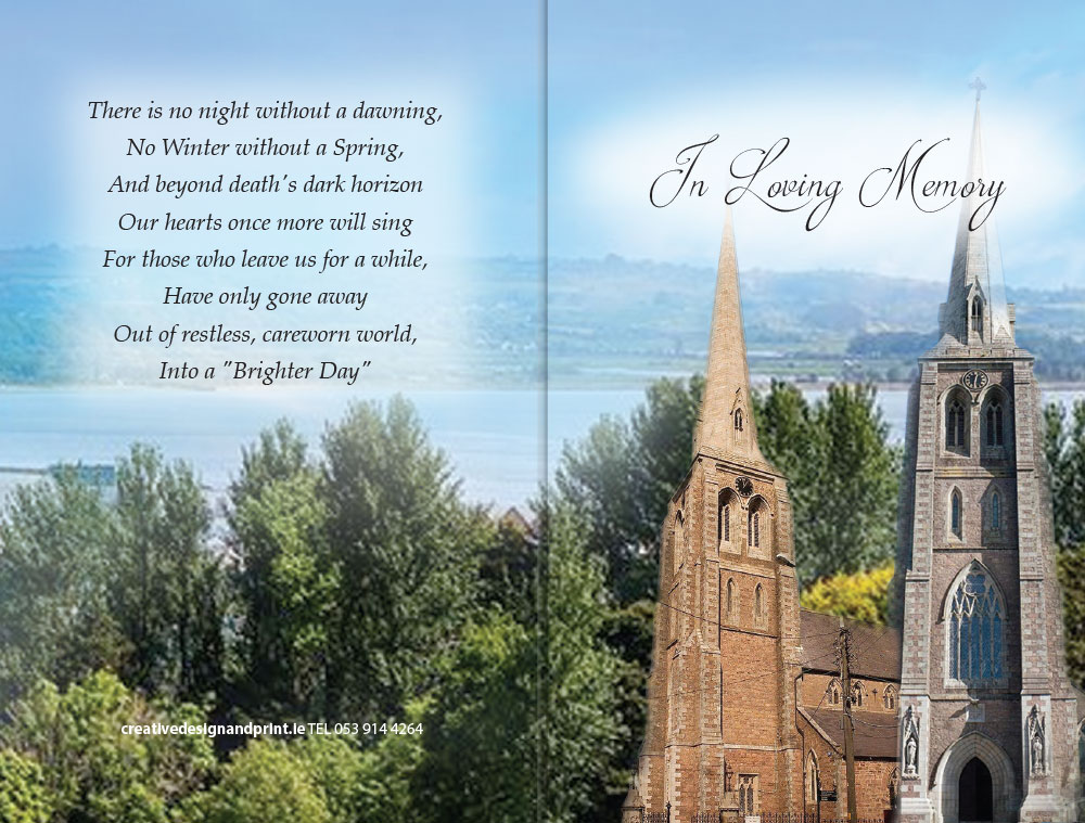 Creative Memorial Cards Ireland – Honour your loved ones with our beautifully crafted Wexford Twin Churches Memorial Cards.