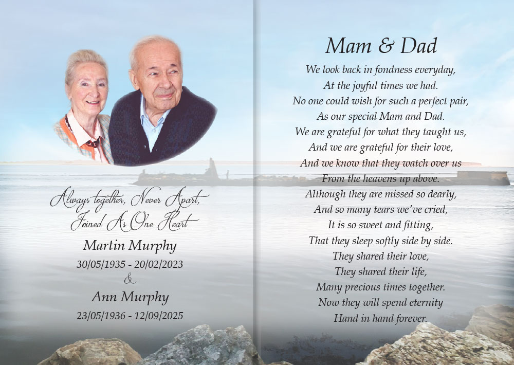 In addition to our Wexford Twin Churches Memorial Cards, we also offer a custom memorial card design service. Alternatively, you may wish to use your own images that have a special significance for your loved one. Click here to view our full range of Memorial Verses before you fill in the form.